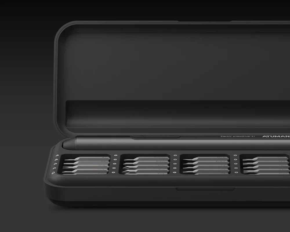 The ATuMan E1 Electric Screwdriver Set is a precision tool built for electronics, gadgets, and home repairs. With dual-speed adjustment, precise torque control, and a rechargeable battery, it ensures smooth and efficient performance for delicate tasks. Equipped with 25 precision bits and a compact ergonomic design, the E1 is perfect for repairing phones, laptops, cameras, watches, and other small devices.