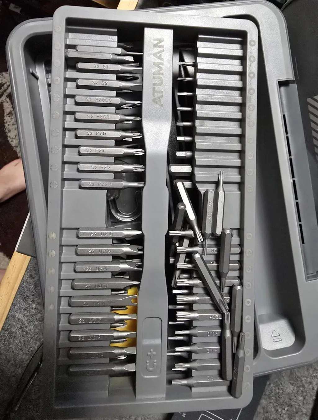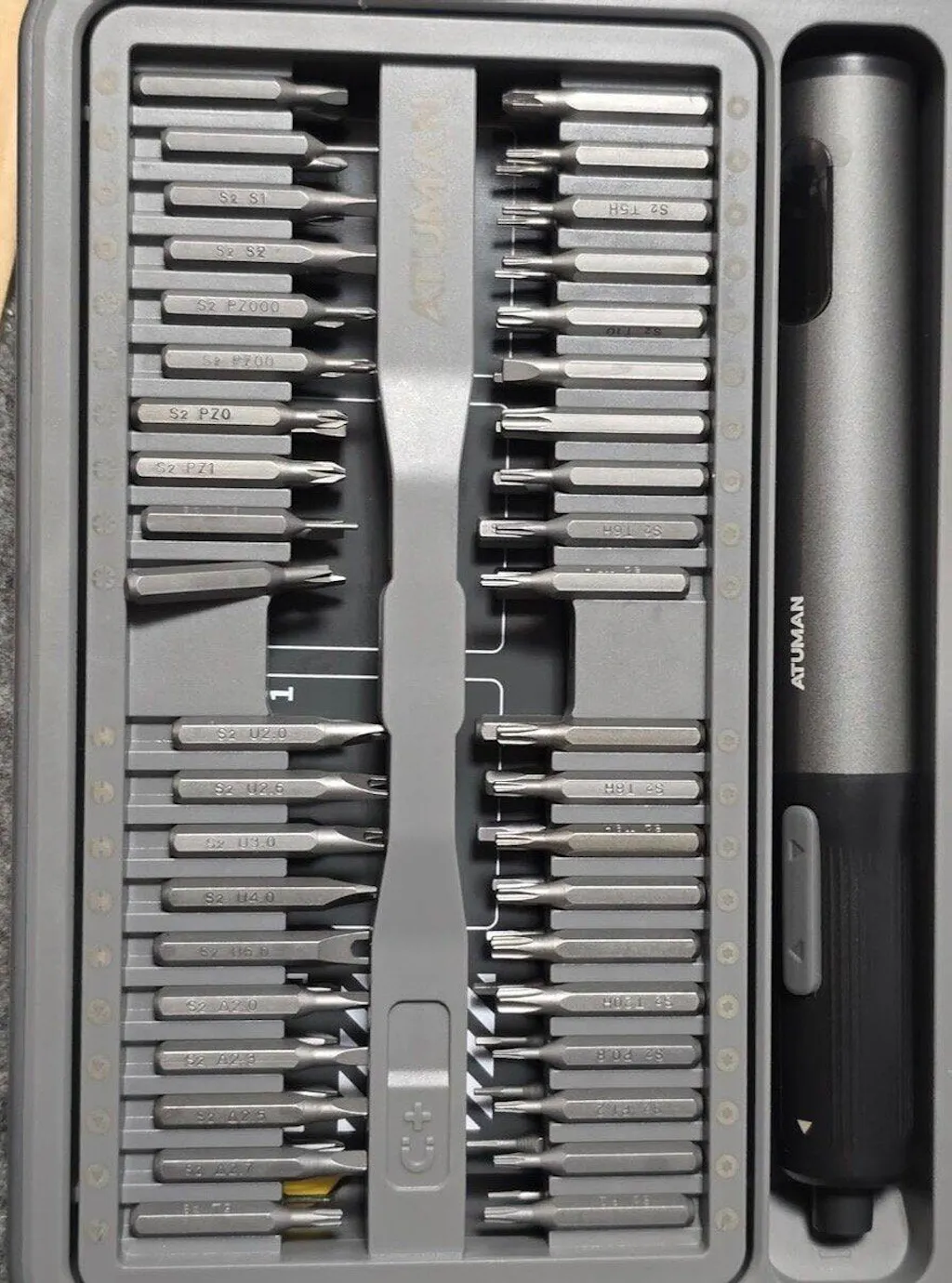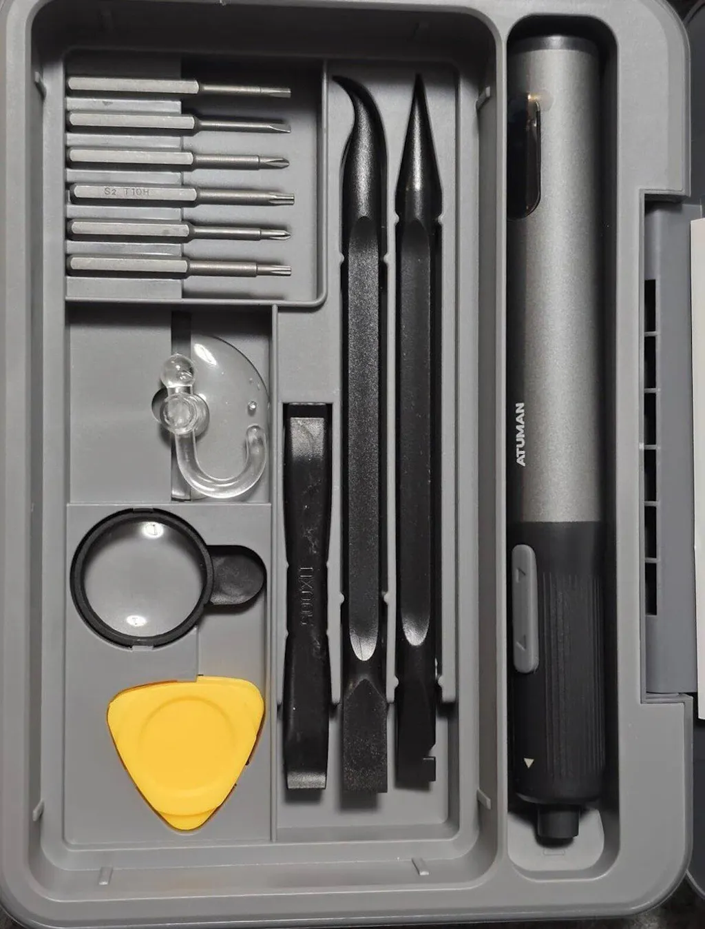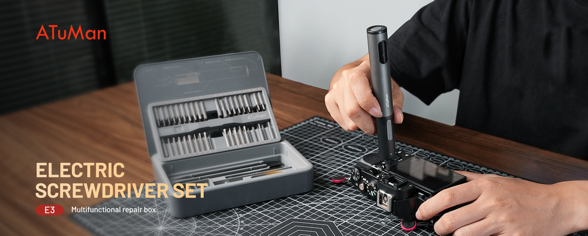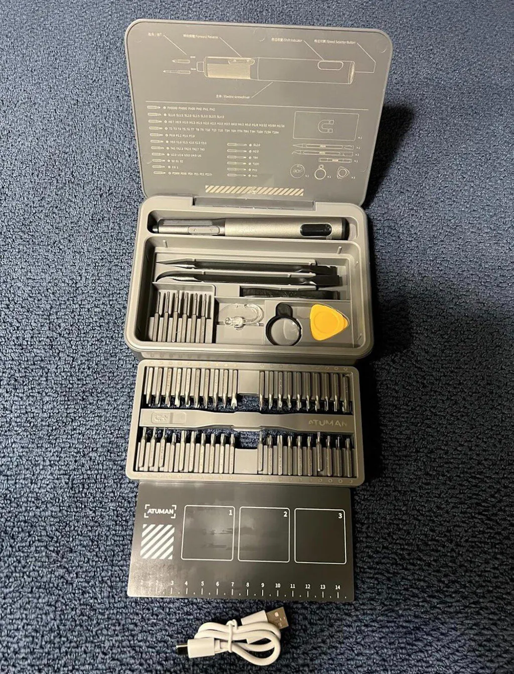 The ATuMan E3 Electric Screwdriver Set is a compact, all-in-one repair kit perfect for electronics, gadgets, and home essentials. Featuring high torque and 3-level adjustable settings, it handles delicate electronics and tougher household repairs with ease. The integrated toolbox keeps 95 precision accessories organized, while the smart display and magnetic work plate ensure convenient, efficient, and loss-free operation. Rechargeable via Type-C, it’s portable and ready for any DIY or professional task.